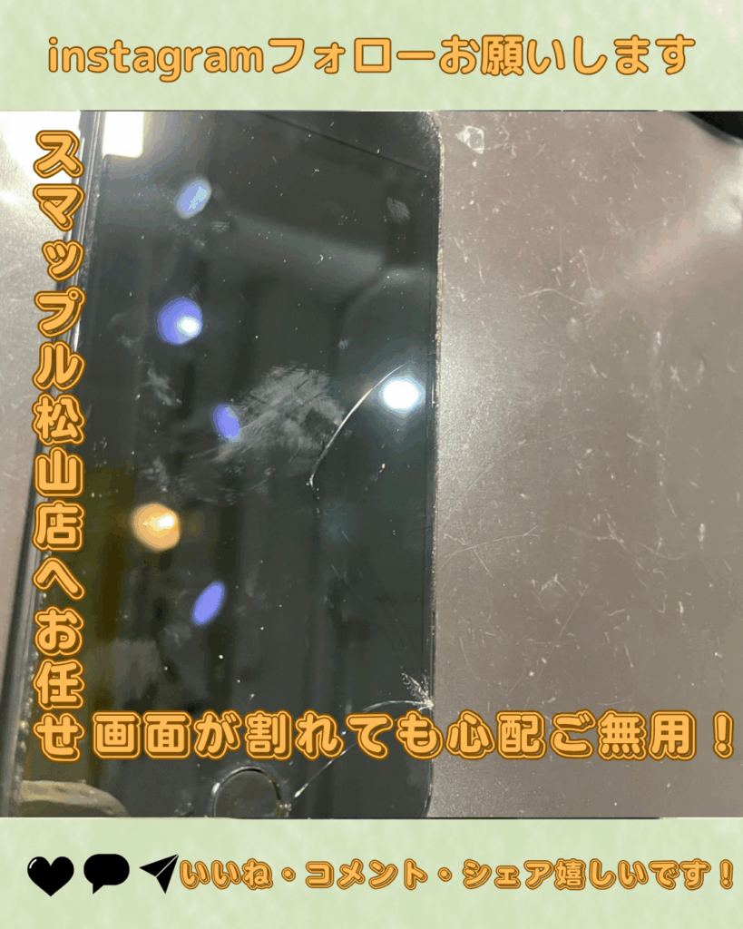 iPhoneSE2/3の愛用者率は高く、その分、画面故障での画面交換、バッテリー交換を沢山ご依頼頂きます。少なくとも1日に1件2件は同端末の修理を実施しています。ですのでiPhoneSE2/3の修理は是非実績豊富なスマップル松山店へお持ち下さい!お困りの症状が改善出来ますよ☆