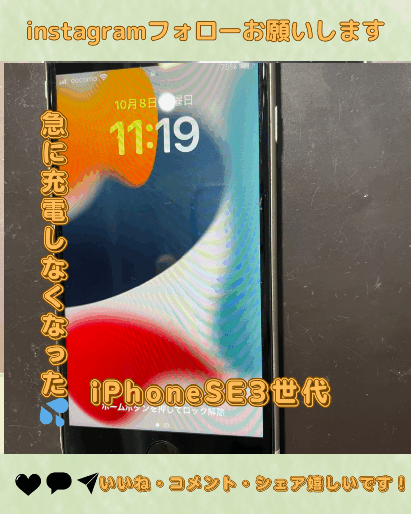毎日沢山の方にスマートフォン、iPad、switch、switchライト、switch有機ELモデル等の修理にご来店頂いております。スマップル松山店をご利用頂き誠にありがとうございます。数ある修理の中でも一番お客様に喜ん …投稿日:2025-10-13iPhoneSE3が突然充電出来なくなった💦こんな時はどうしたら良いの?