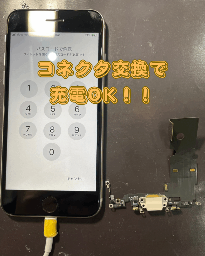 でも、ご安心を、このドックコネクタは交換可能なパーツです。しっかりと充電可能なコネクタと交換してあげると充電が出来る様になります!今回お持ち頂いたiPhoneSE3は画面割れも併発していたので画面交換とコネクタを交換して頂きました。しっかり充電出来る様になったのでお客様にも喜んで頂きました。充電の問題はスマップル松山店へ是非お持ち下さい!!