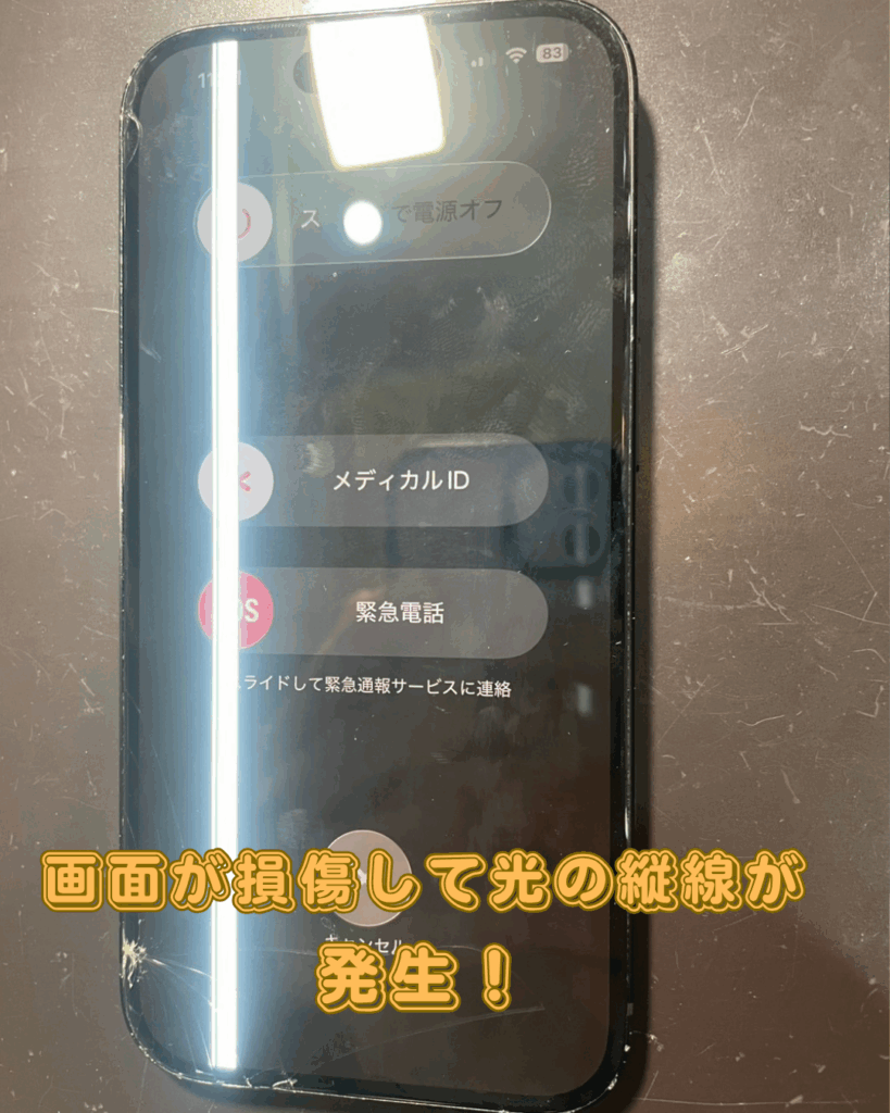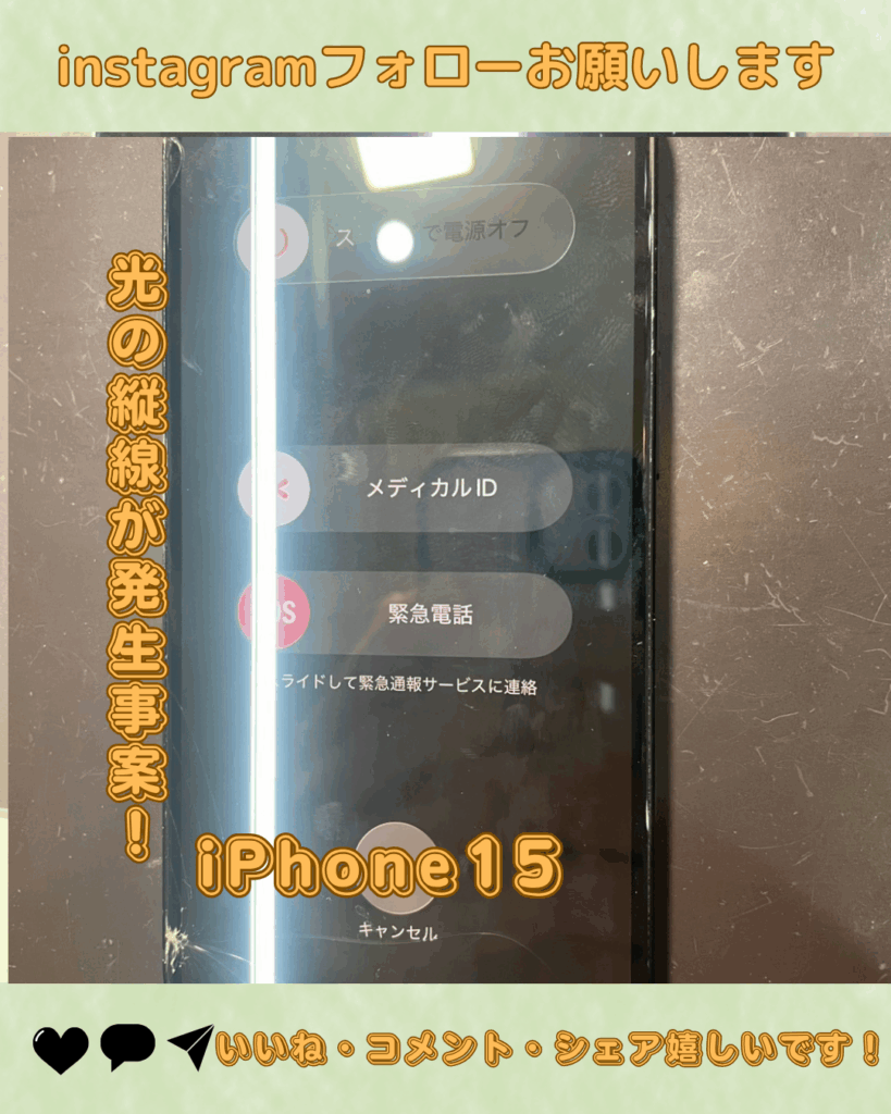 iPhone15の画面に光りの縦線が発生事案!