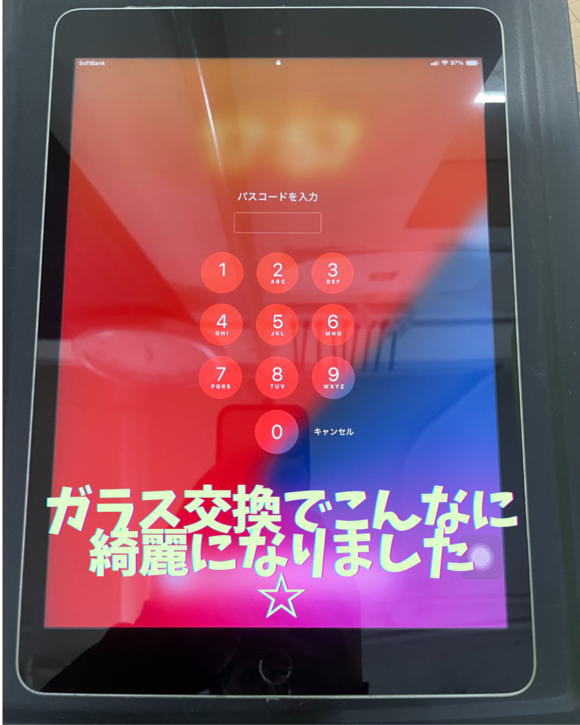 今回お持ち込み頂いtiPad9世代、6世代、7世代、10世代等はガラスパーツと液晶パーツが別々のパーツになっています。iPhoneと同じようにiPadProシリーズやiPadAir2~やiPadmini5等はガラスパーツと液晶が1セットになっています。ですので、液晶は損傷など無く使用出来る状態であればガラスパーツのみの交換やガラス割れなど無い状態であれば液晶パーツのみの交換も可能です。基板側の問題が無くパーツのみで改善出来る場合はデータそのままで画面が映し出されますのでデータ移行やバックアップも出来ますよ☺