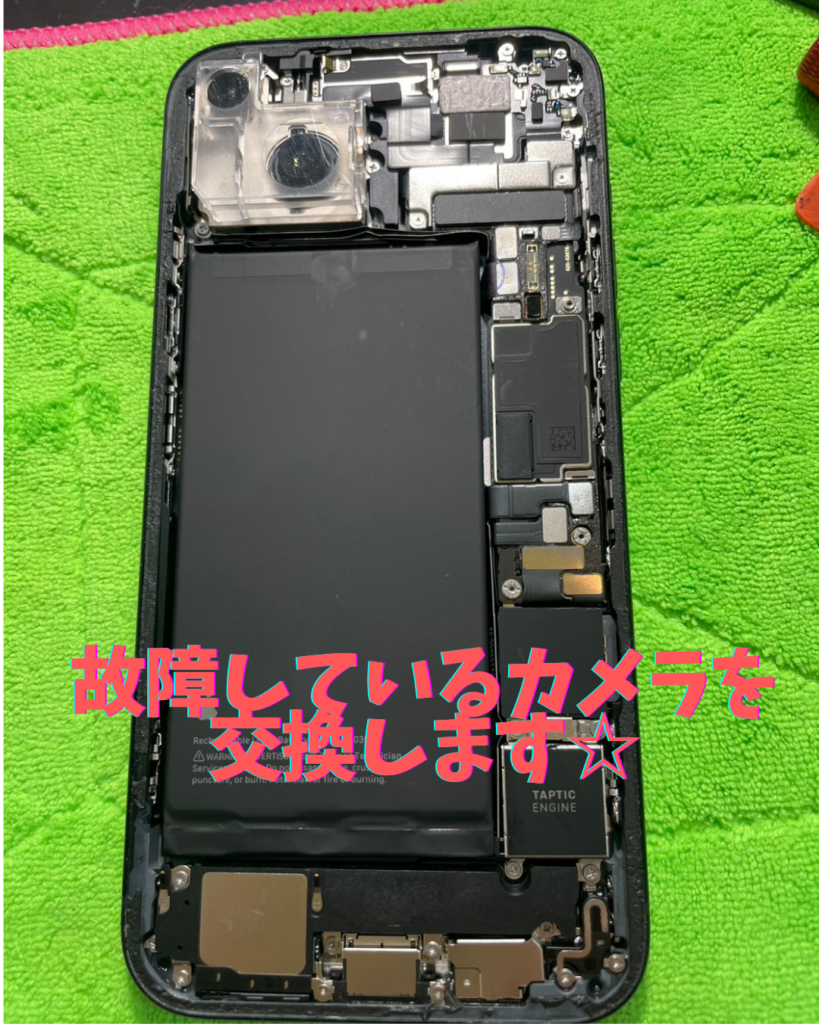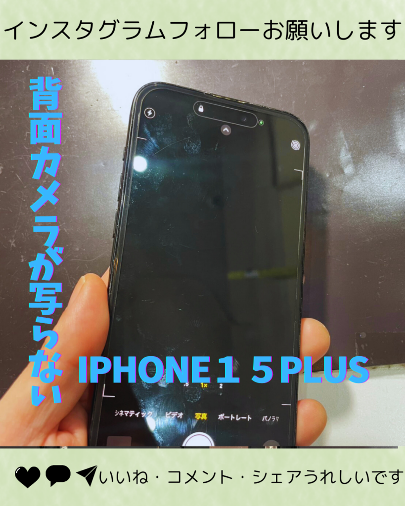 iPhoneの重要な機能の一つである背面カメラ、そのカメラが突然使えなくなったらビックリしますよね。今回お持ち込み頂きましたiPhone15Plusもそんな困った状態になっていました……………………………..