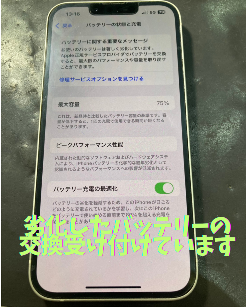 今回はiPhone13のバッテリー交換をご依頼頂きました。最近特に減りが早いとの事です。ポケモンGO等のGPS系のアプリが沢山起動していたため減りが早くなっていた様です。 iPhoneのバッテリーは劣化するとどうしても減 …投稿日:2025-12-25