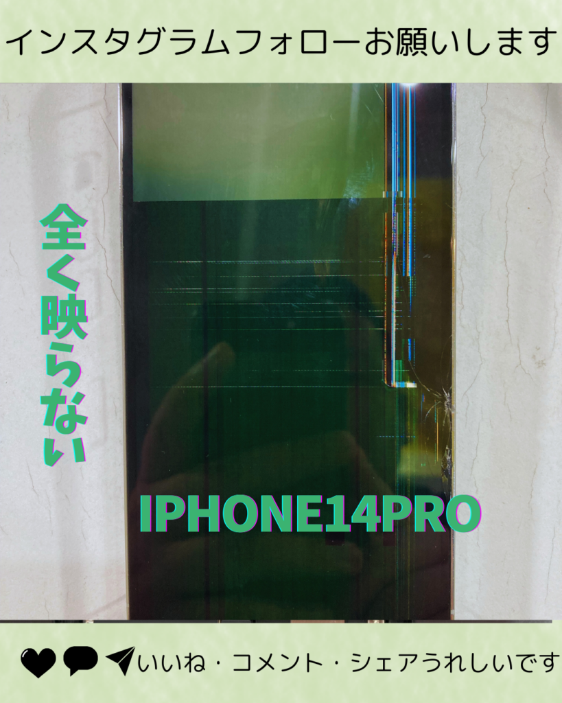 今回は画面がほぼ映らなくなったとのことでiPhone14Proの画面の修理をご依頼頂きました。