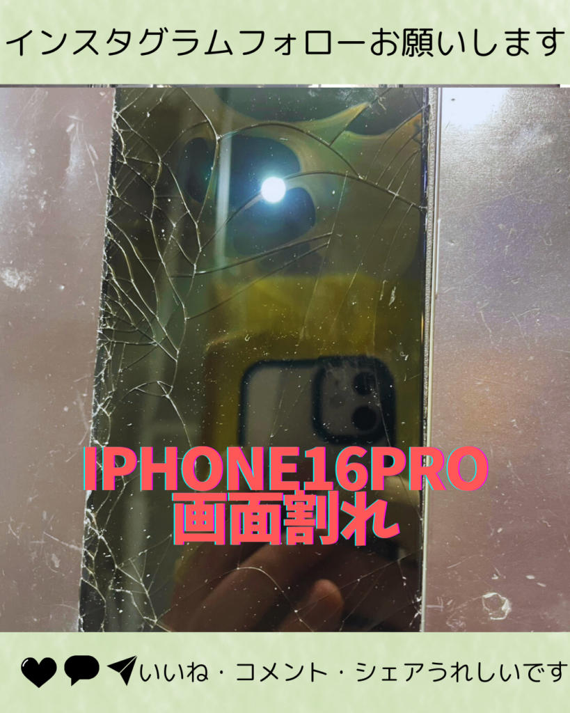 2026年がスタートしました。年末年始は出かける機会も多くなります。特にお正月になると人が密集している所に行く機会も増えます。アッと思った瞬間に人だかりでスマートフォンを落としてしまった…….なんて例も多くあります。今回も年明け早々にiPhone16Proの画面を割ってしまったとお持ち込み頂きました。