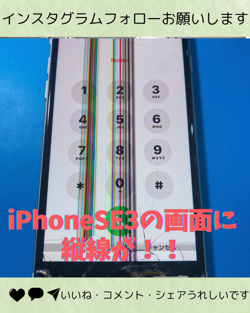 iPhoneSE3画面損傷&ホームボタン効かない!!