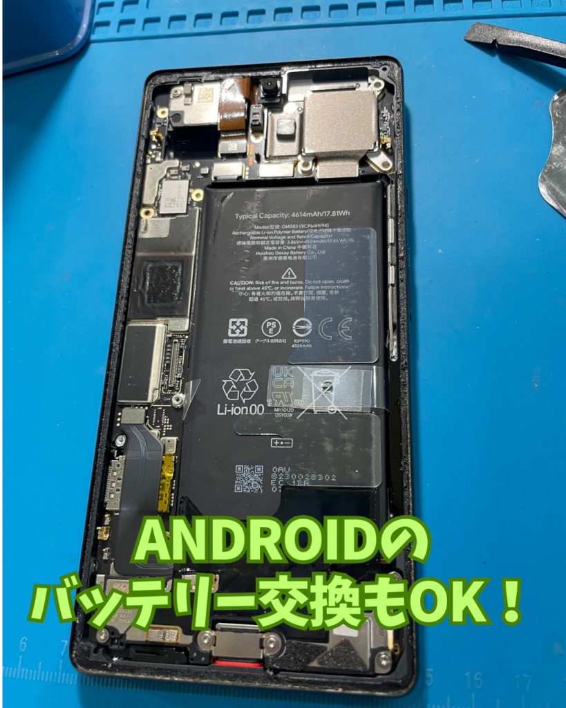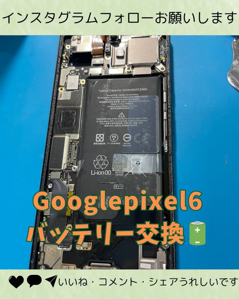 Googlepixel6のバッテリー交換をご依頼頂きました。2021年10月28日日本で発売開始されたスマートフォンですのでかれこれ4年以上の月日が経っています。スマートフォンに搭載されているリチウムイオンバッテリーの寿命は2年~3年と言われています。使用年数から考えてもバッテリーが劣化している事は避けられない状態かもしれません。最近充電の持ちが悪い、直ぐに充電しないといけない等の状態がある方は是非バッテリー交換をご検討下さい。是非店頭へ一度お持ち込み下さい。ご来店お待ちしております。